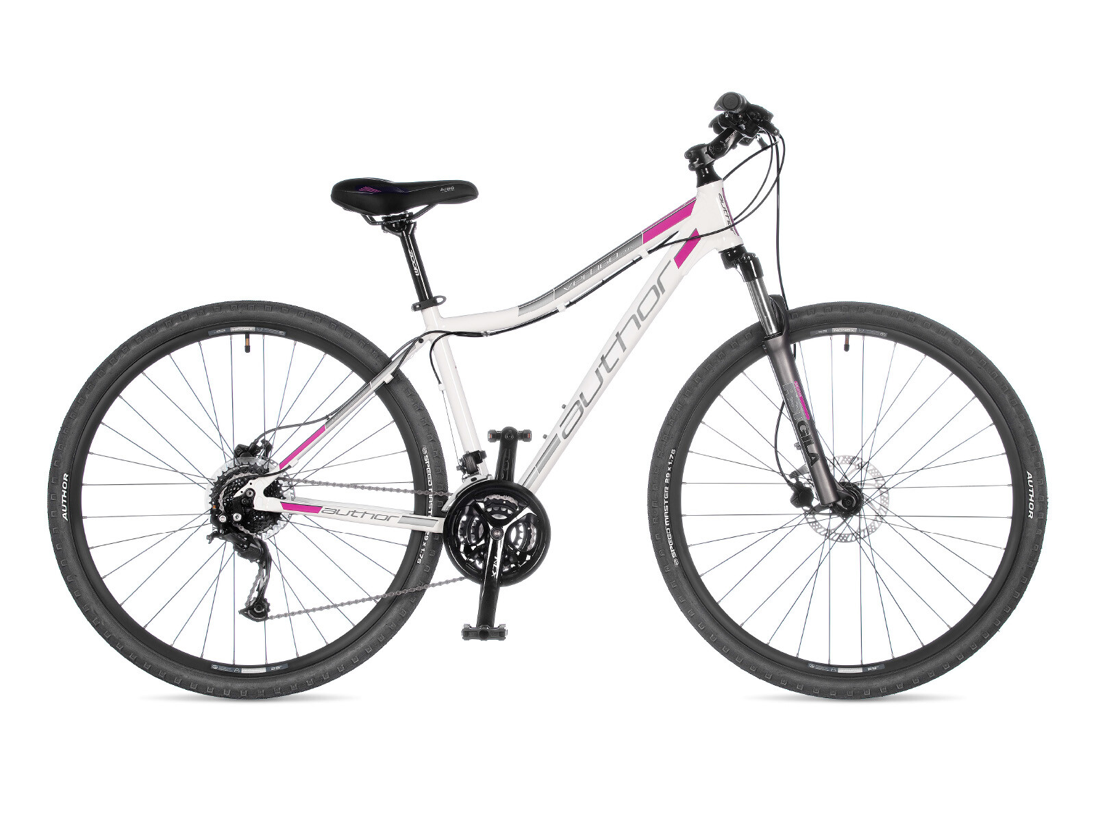 Základní dámský model v kategorii Cross 29 nabízí všechny výhody této třídy za dostupnou cenu. Duralový ASL rám s pohodlnou geometrií, odpružená uzamykatelná vidlice RST, nastavitelný představec a univerzální pláště Author Speed Master – to jsou základní atributy Authoru Vertigo ASL, který díky těmto vlastnostem patří mezi nejprodávanější kola v této kategorii. Sada Shimano Alivio v provedení 3 × 9 rychlostí je doplněna hydraulickými kotoučovými brzdami Tektro. Příjemným bonusem je i možnost volby mezi 3 velikostmi rámu a 2 barevnými variantami. Toto kolo uspokojí spíše nenáročnou zákaznici, která požaduje například spolehlivý dopravní prostředek na každodenní ježdění na krátkých trasách či nenáročné víkendové rodinné výlety. Díky promyšlenému osazení se ale neztratí i v lehčím terénu, kde dokáže nabídnout rozumné pohodlí.