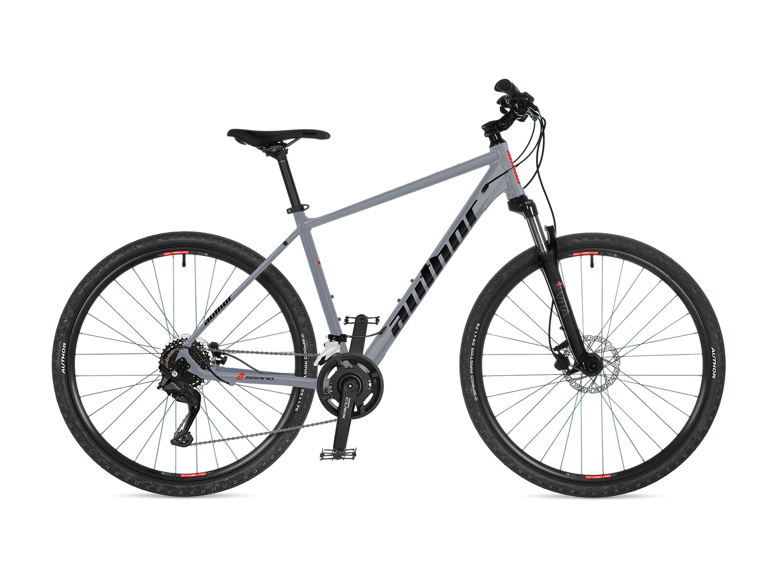 Rychlý a pohodlný charakter kola podtrhují pláště AUTHOR Speed Master 29" x 1.75", které zajišťují svižnou jízdu na silnici a dostatek jistoty na zpevněných cestách.